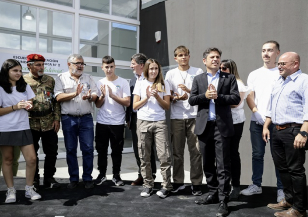 El gobernador de la provincia de Buenos Aires, Axel Kicillof, encabezó este jueves el acto de inauguración del nuevo edificio de la Escuela Técnica N° 2 “Héroes de Malvinas” en el municipio de Ramallo. Fue junto al director general de Cultura y Educación, Alberto Sileoni, el intendente local, Mauro Poletti y la directora de la institución, Antonella Habitante.