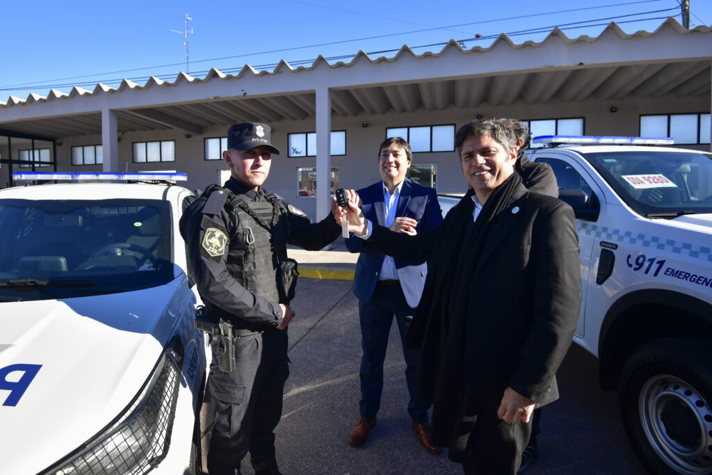 Durante la jornada, el Gobernador puso en funcionamiento nuevos patrulleros para reforzar las tareas de prevención y combate del delito en el distrito. En tanto, junto al ministro de Salud, Nicolás Kreplak, entregó una ambulancia de alta complejidad para el hospital municipal “Dr. Luis Tabares”, que permitirá dar respuesta a pacientes en estado crítico.