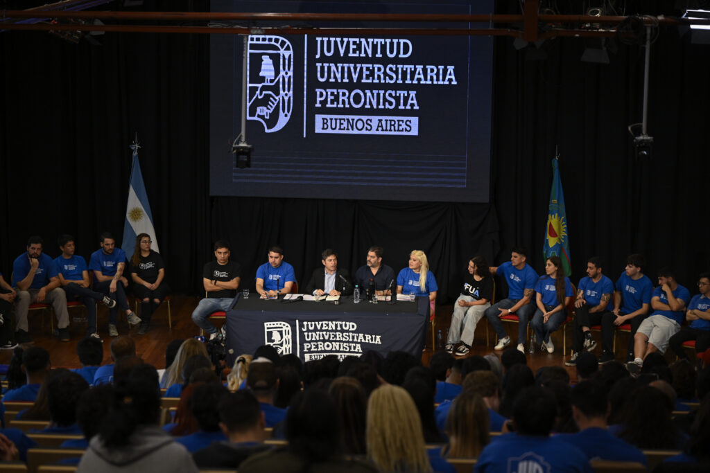 El gobernador Axel Kicillof participó este lunes del acto de renovación de autoridades de la Juventud Universitaria Peronista (JUP) de la provincia de Buenos Aires. Fue en el Aula Magna de la Universidad Nacional de Quilmes, junto al ministro de Gobierno, Carlos Bianco; el rector de la institución, Alfredo Alfonso; la vicerrectora Alejandra Zinni; y el secretario general de la JUP, Juan Pablo Gómez.