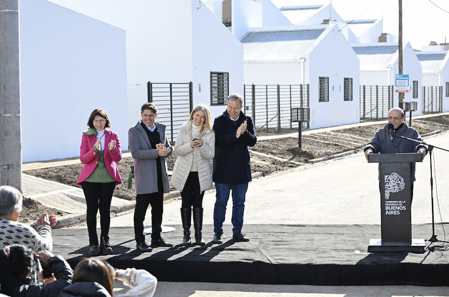 El gobernador de la provincia de Buenos Aires, Axel Kicillof, encabezó este miércoles junto a la vicegobernadora Verónica Magario el acto de entrega de 110 viviendas para familias del Barrio Kennedy Norte, en el municipio de Berazategui. Fue con la presencia de la ministra de Hábitat y Desarrollo Urbano, Silvina Batakis; el intendente local, Juan José Mussi, y su par de Almirante Brown, Mariano Cascallares.